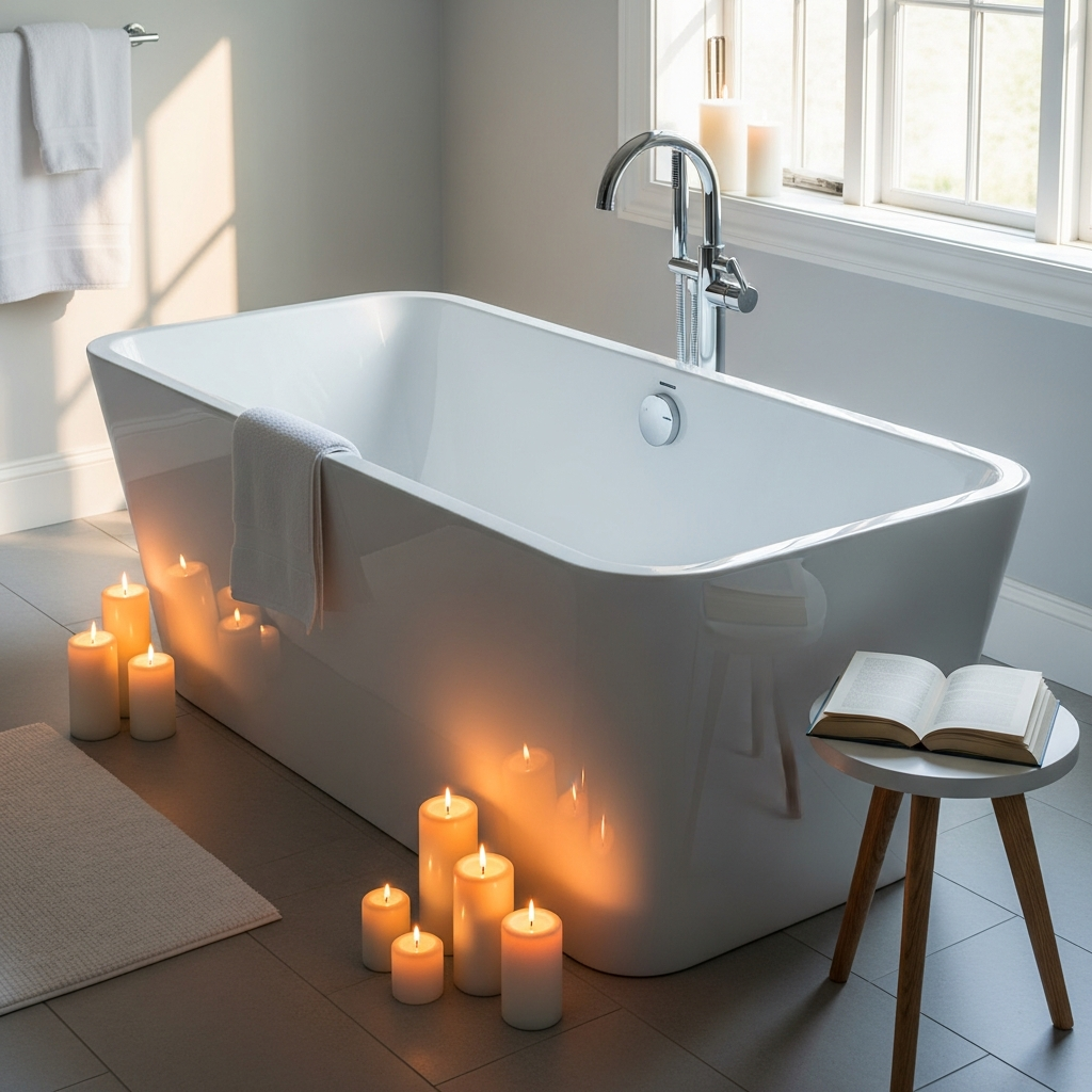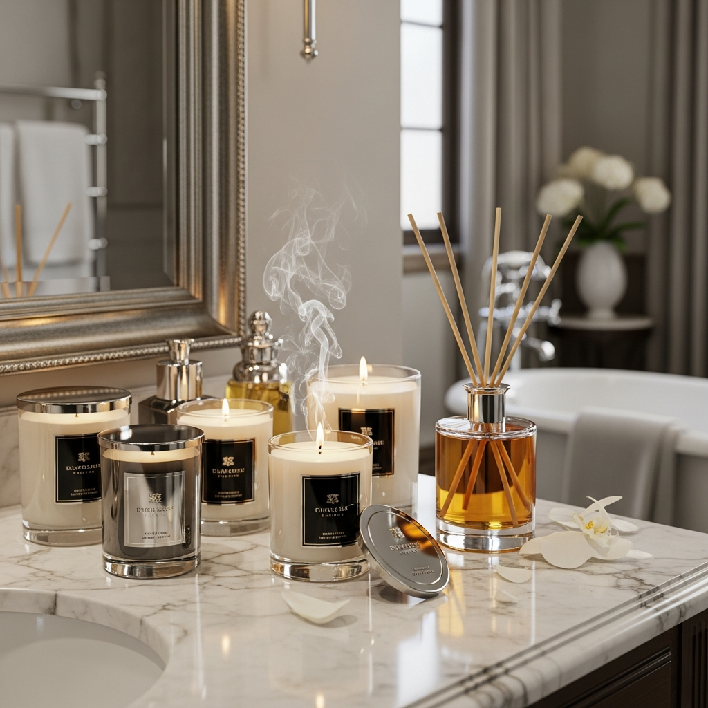Engage all your senses with luxurious scents. Place high-quality scented candles, reed diffusers, or an essential oil diffuser strategically. Choose sophisticated fragrances like sandalwood, jasmine, or sea salt to evoke calm and cleanliness. The flickering glow of a candle also adds a tranquil, indulgent atmosphere during evening soaks.
