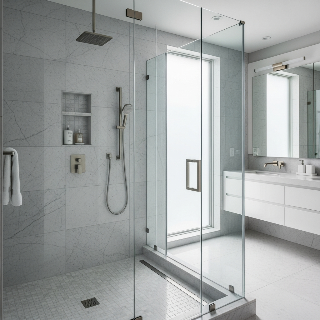 A walk-in shower with seamless glass enclosures creates an open, airy feel, making the bathroom appear larger and more sophisticated. The transparency highlights beautiful tile work and allows natural light to flow freely. Opt for frameless glass for the ultimate sleek and modern aesthetic.