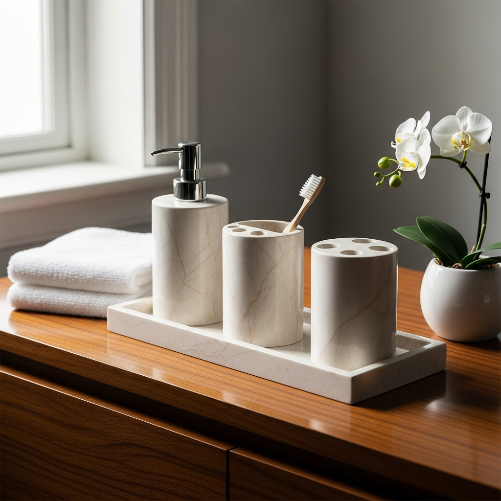 Pay attention to the smaller details. A matching set of high-quality soap dispensers, toothbrush holders, and waste bins made from ceramic, marble, or polished metal can make a significant difference. These curated pieces elevate the everyday items into luxurious decor elements, tying the whole room together.