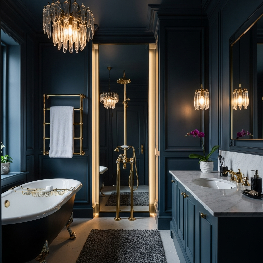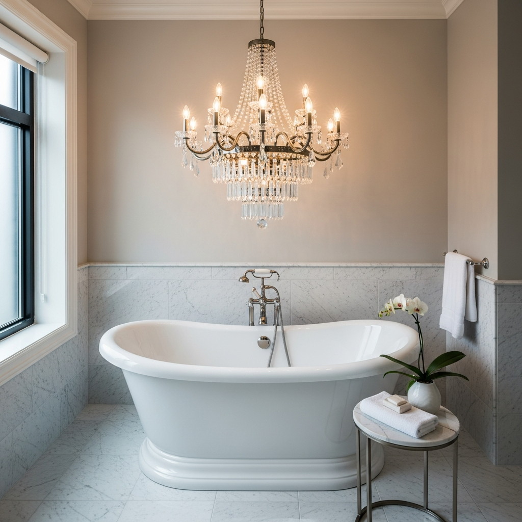 Move beyond basic vanity lights. A dramatic chandelier, elegant pendant lights, or even artfully placed sconces can transform the mood of your bathroom. Choose fixtures made from brass, crystal, or matte black for a touch of glamour. Good lighting is essential for both function and creating a lavish ambiance.