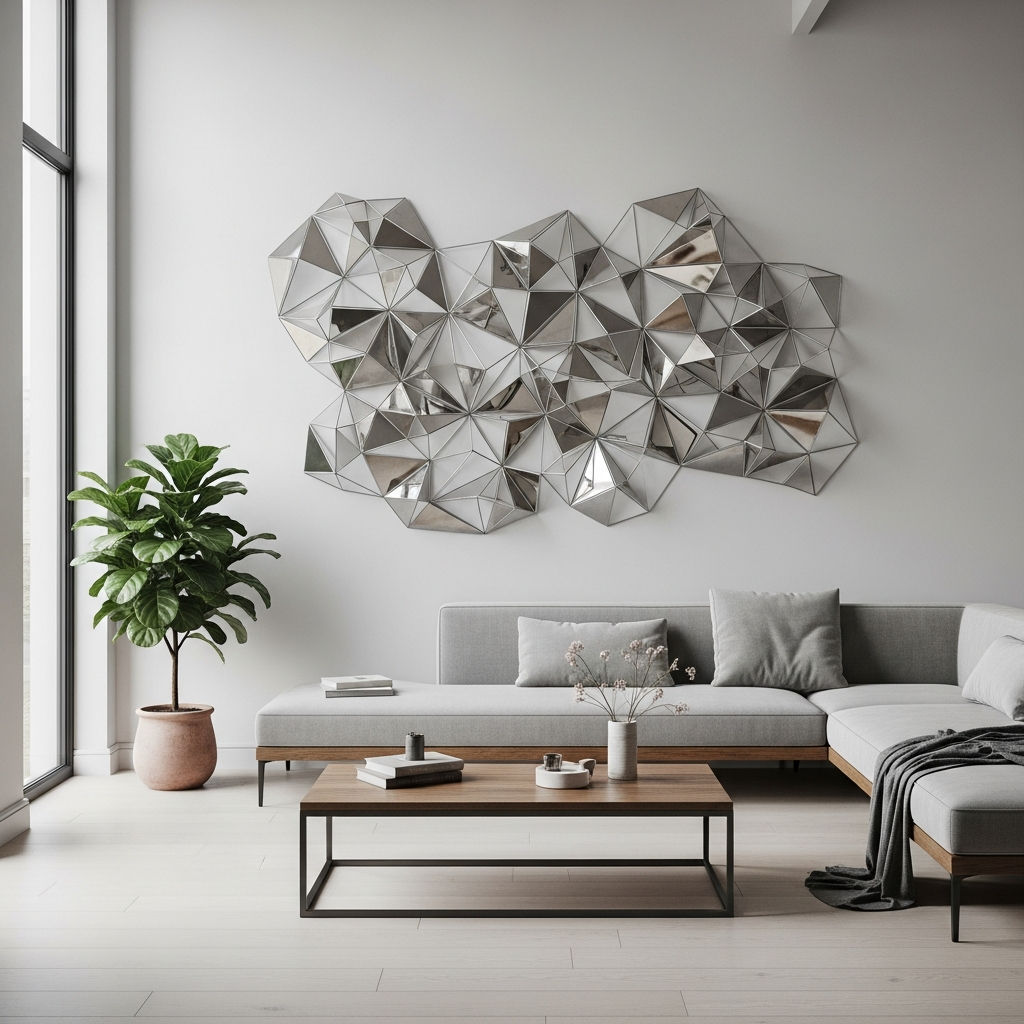 This creates an edgy, modern, and artistic statement, often reflecting light beautifully. It works best in contemporary or industrial-style spaces, paired with sleek furniture and minimal decor to highlight the art.