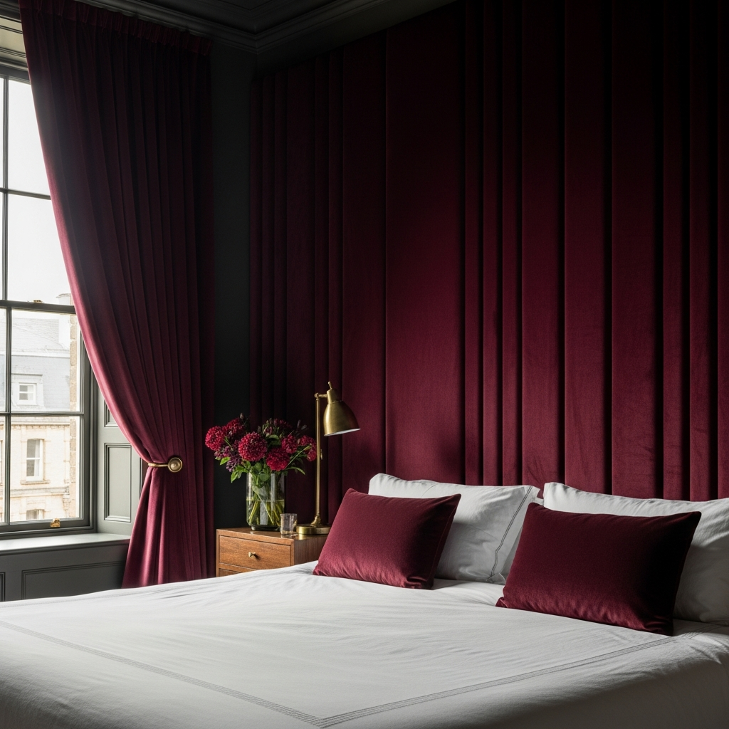 This choice creates an incredibly opulent, sensual, and intimate mood, perfect for a glamorous bedroom or a sophisticated lounge. Pair with metallic details, soft lighting, and plush furnishings for a truly decadent space.