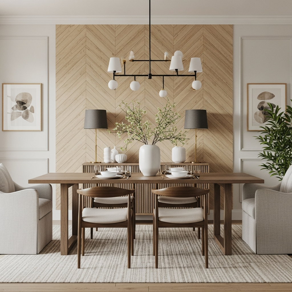 Bring nature indoors with textured wood paneling. Whether you opt for horizontal planks for a wider feel or vertical slats for added height, wood introduces warmth and organic texture. Lighter woods like birch or maple lend a Scandinavian touch, while darker walnuts evoke a more rustic yet refined atmosphere.