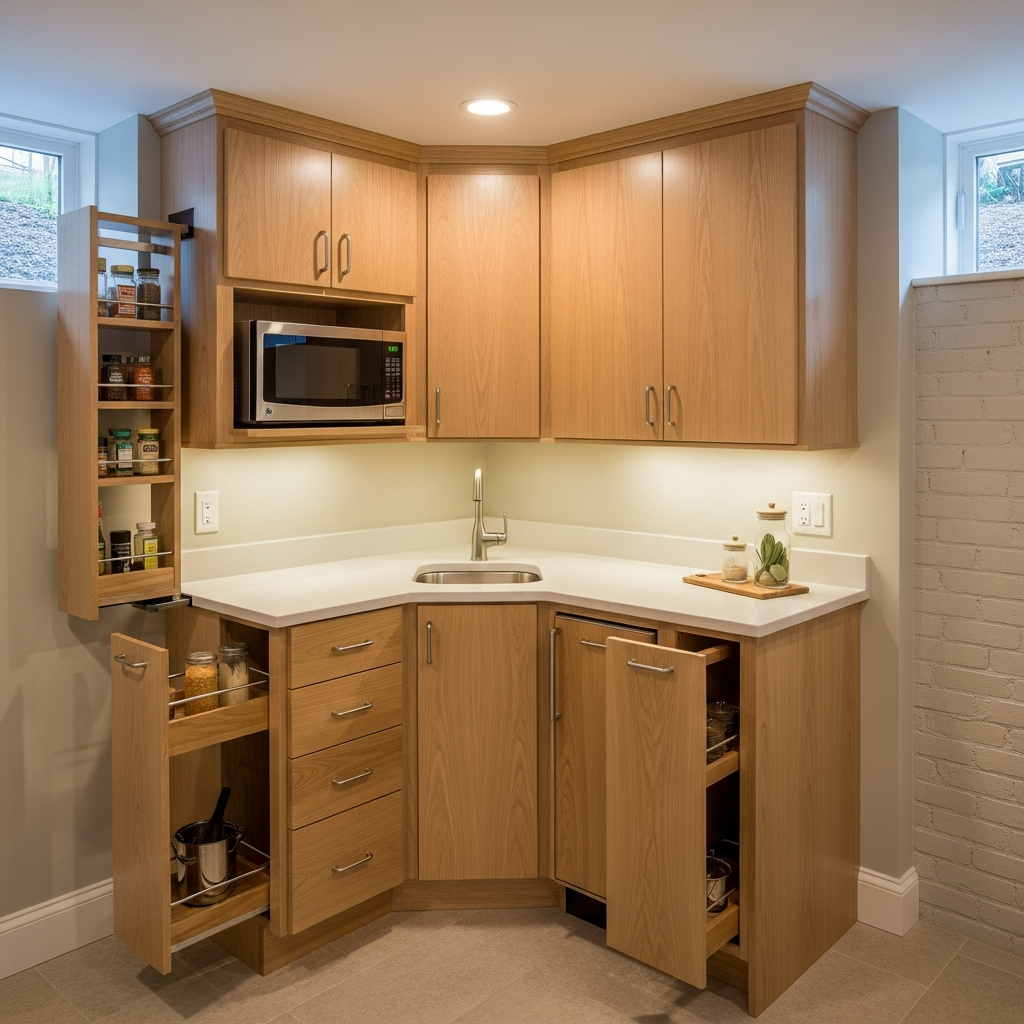 When space is truly limited, utilize a corner for a built-in kitchenette. Custom cabinetry can make the most of awkward angles, providing essential storage and appliance nooks. A small sink, a microwave, and a mini-fridge can fit surprisingly well. Use a consistent color scheme, like light wood or a neutral paint, to make the corner feel intentional and harmonious, a tiny functional jewel.