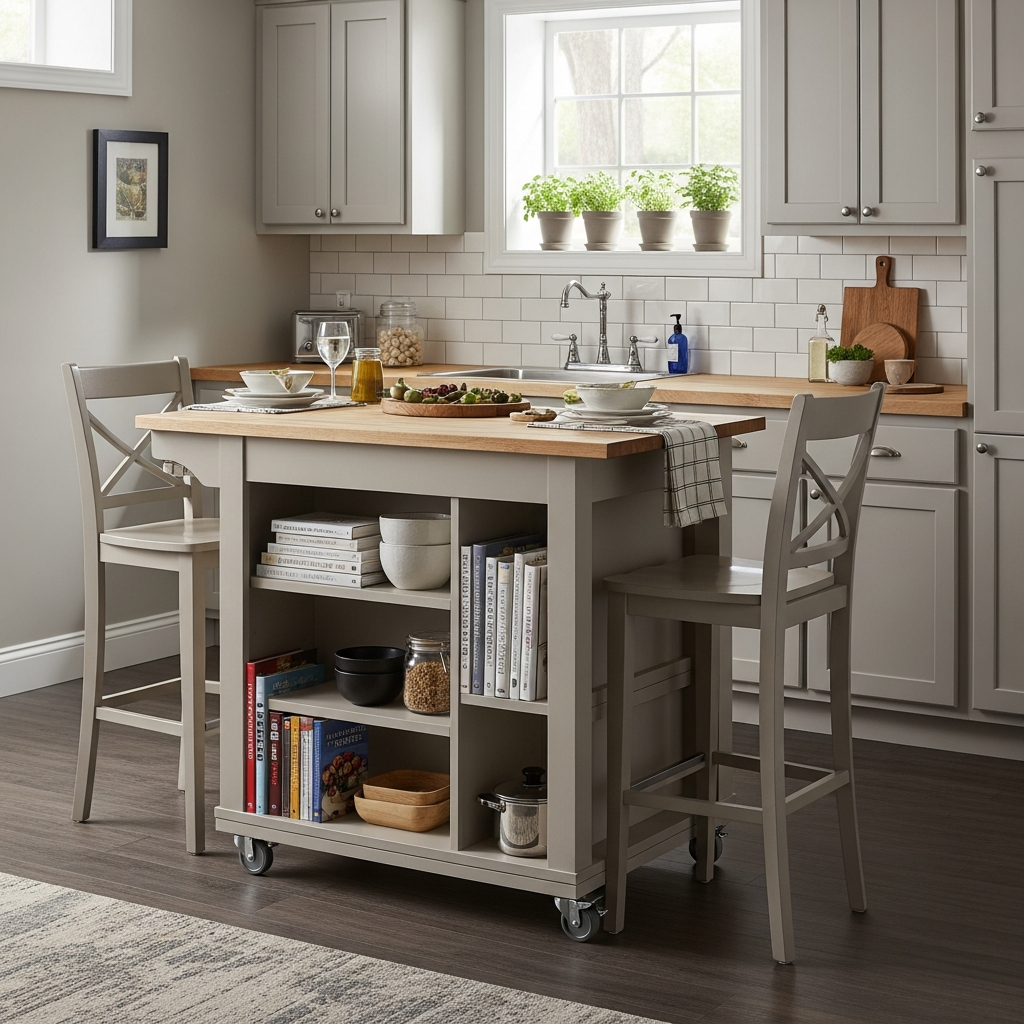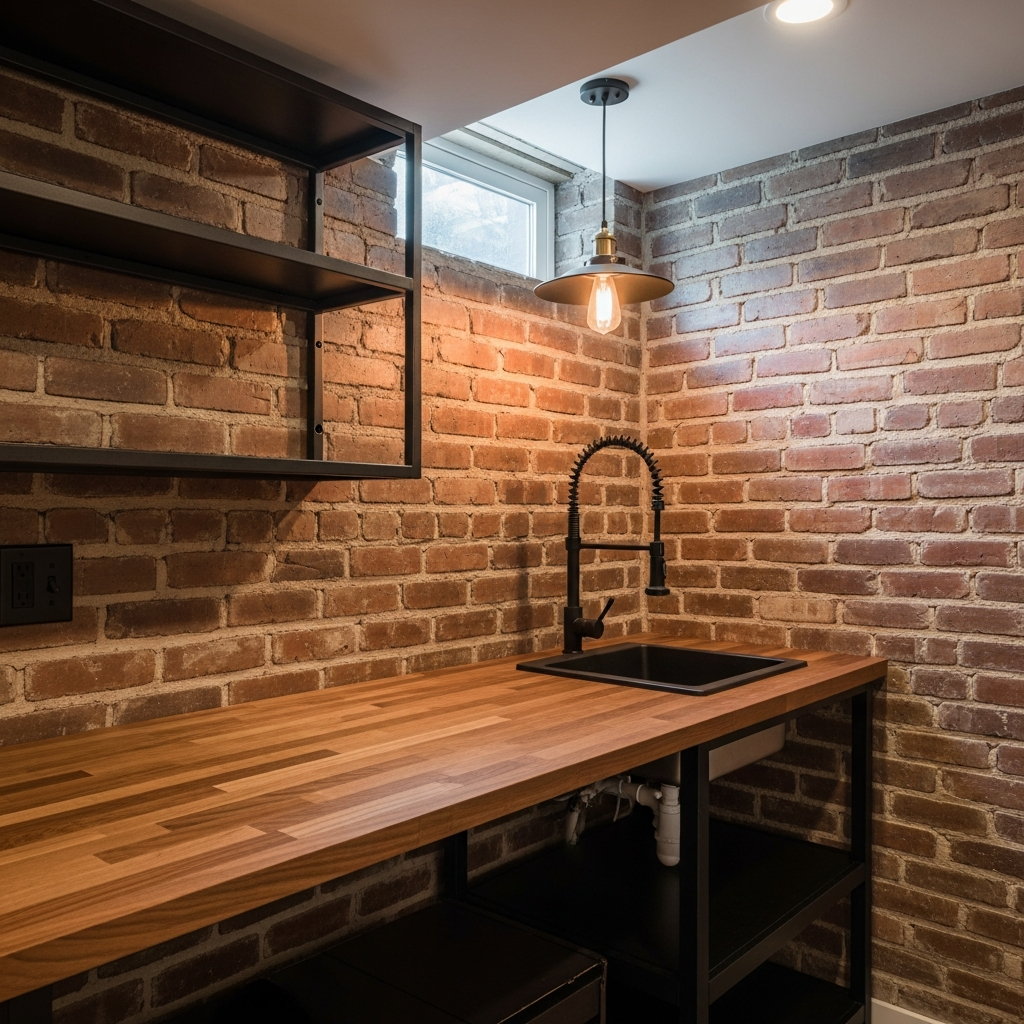 In a small open-plan basement, a compact, multi-functional island can be a game-changer. Choose one with wheels for flexibility, offering extra prep space, a small eating area with stools, and integrated storage. A butcher block or stone top provides durability and style. This piece becomes the heart of the kitchenette, making the most of every square foot with versatile purpose.