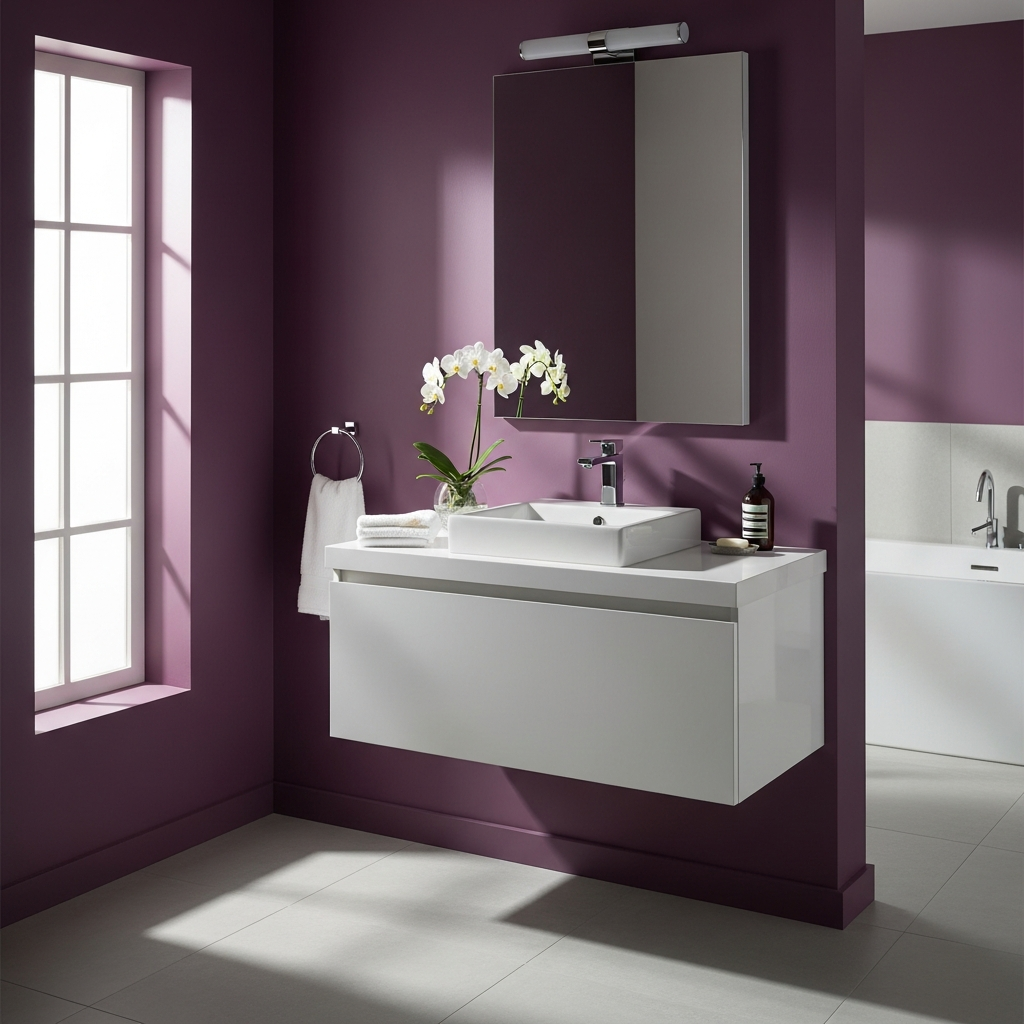 Elegant Plum is an unexpected but wonderfully chic choice for a modern bathroom. This deep, muted purple with reddish undertones adds a touch of luxury and romantic drama. It feels rich and inviting without being overly bright.