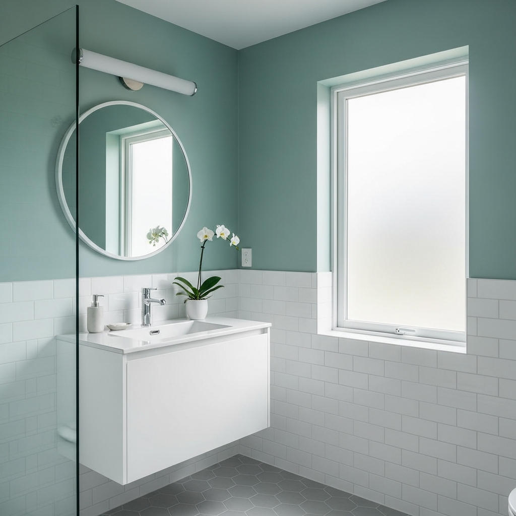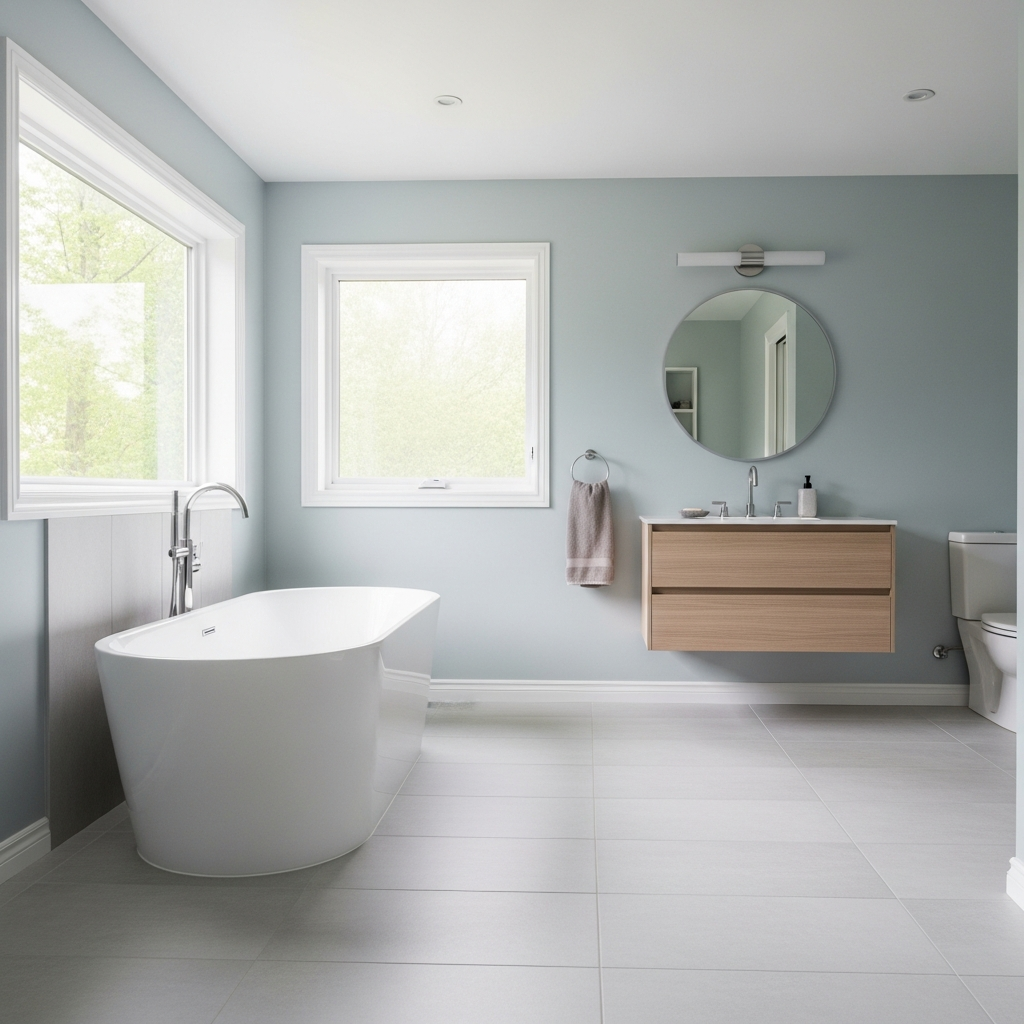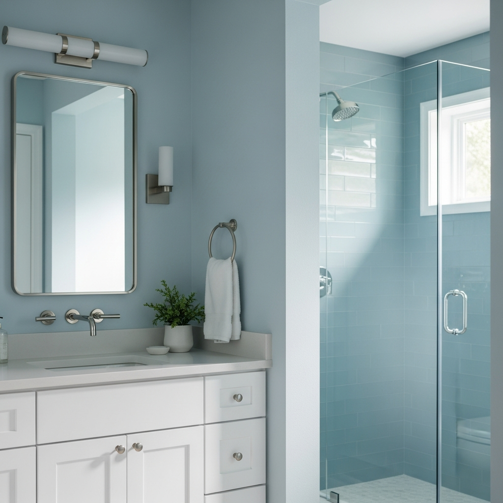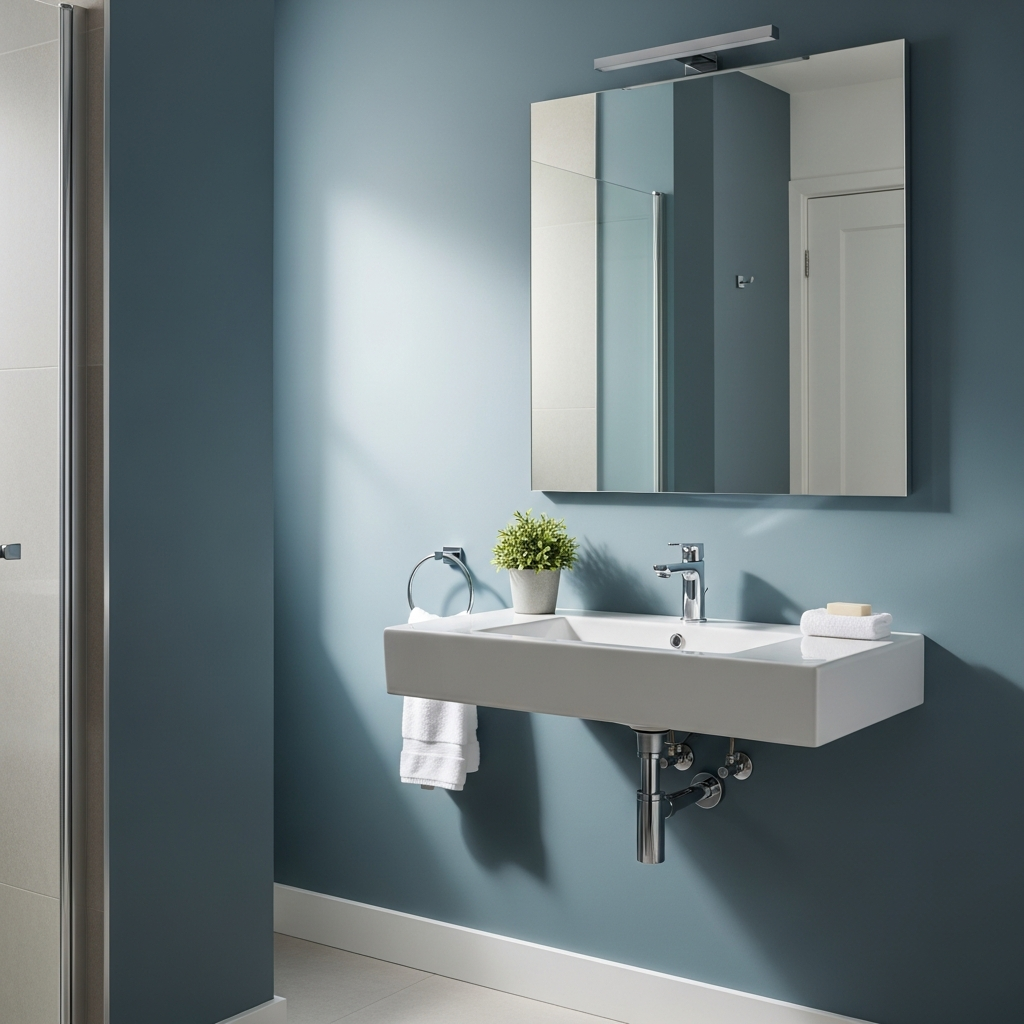 This is not a bright, primary blue, but rather a soft, slightly desaturated blue that evokes clear skies and calm waters. Serene Coastal Blue is inherently refreshing and peaceful, bringing a light, airy feel to any bathroom.
