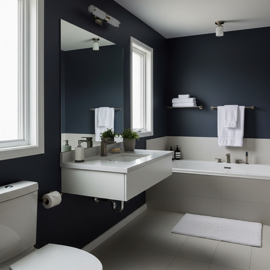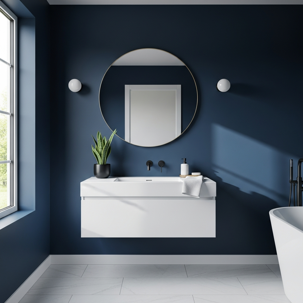 Navy is a timeless classic that can feel incredibly fresh and modern when used thoughtfully in a bathroom. It adds drama, depth, and a sense of refined elegance. Itโ€™s perfect for creating a statement wall or an entire room.