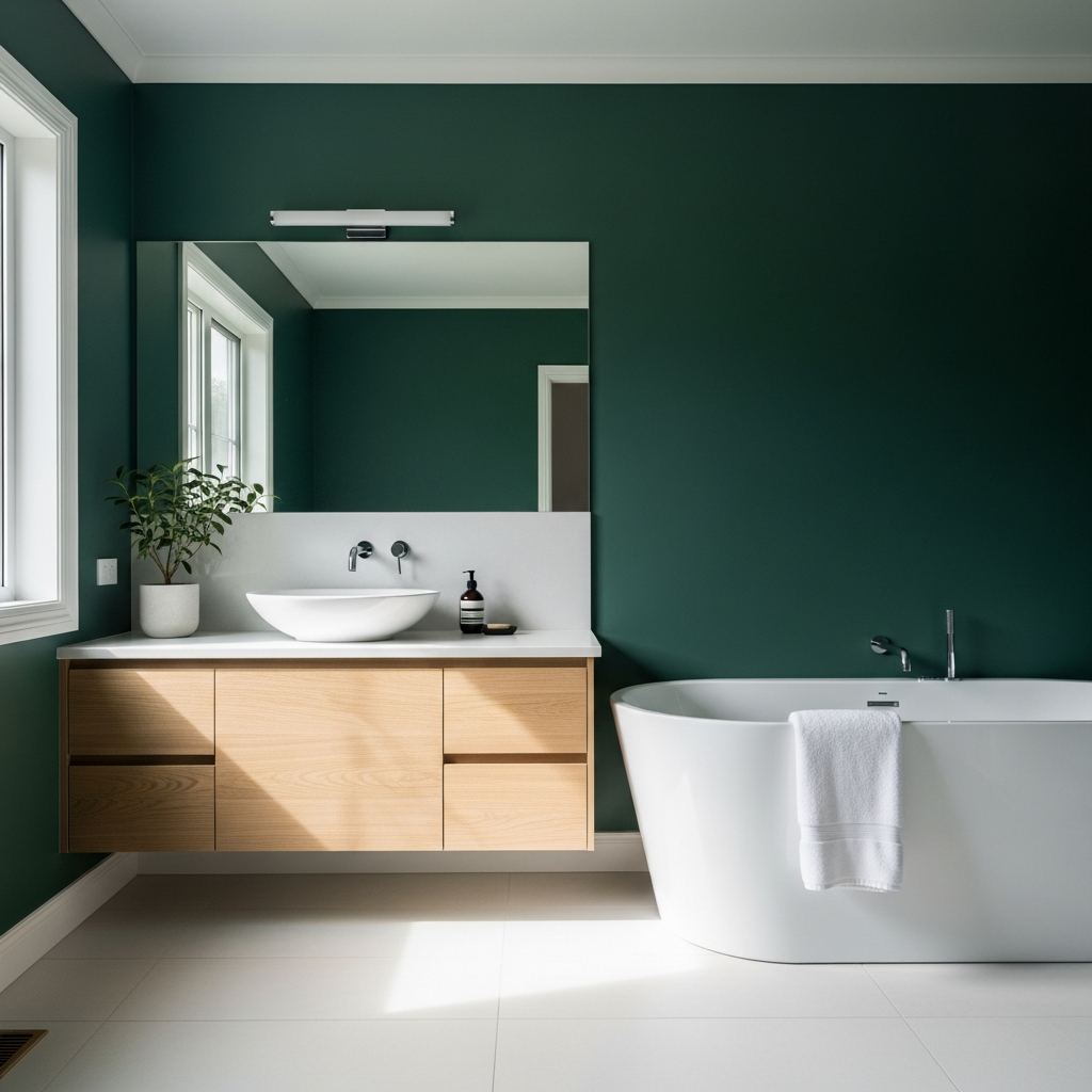 For a bold, sophisticated statement, Deep Forest Green offers an unexpected richness. This intense, shadowy green creates a dramatic backdrop that feels both luxurious and intimately cozy. It works wonderfully in powder rooms or larger bathrooms with ample natural light.