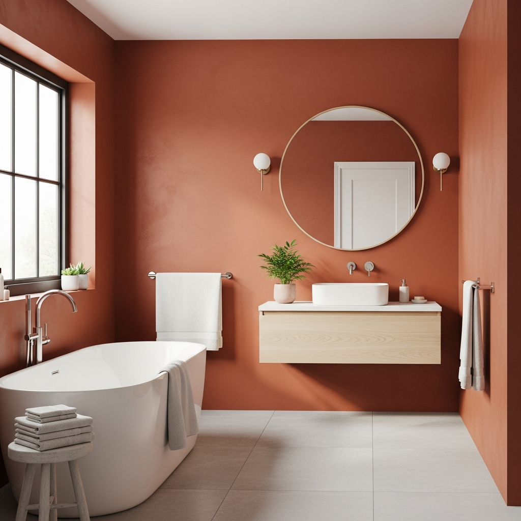Embrace an earthy, sun-baked aesthetic with Warm Terracotta. This muted reddish-brown hue adds a touch of bohemian warmth and character. Itโ€™s unexpected for a bathroom but incredibly grounding and inviting, especially when used thoughtfully.