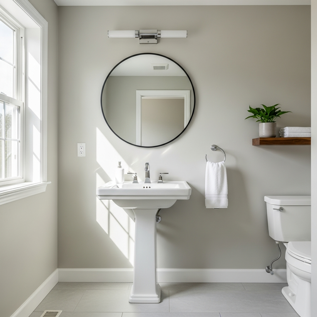 Combine it with aged brass fixtures, a freestanding clawfoot tub, and vintage-inspired artwork. This color evokes a relaxed, timeless charm, making your bathroom feel like a peaceful retreat.