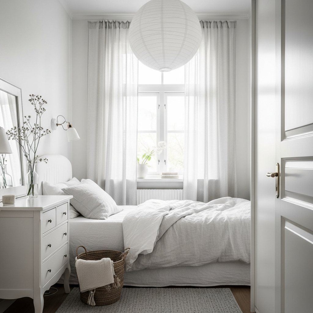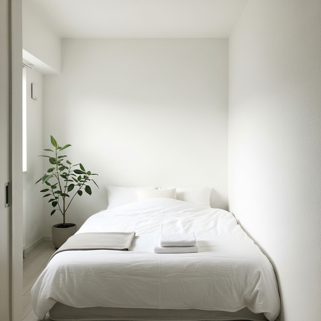 Embrace the minimalist approach: less truly is more in a small bedroom. Remove any unnecessary clutter and keep only essential furniture pieces. This creates an immediate sense of spaciousness and calm. Focus on clean lines, simple forms, and a muted, monochromatic color paletteโthink whites, creams, and very light grays. The absence of visual noise allows the room to breathe, making it feel larger and more serene. Add one small, meaningful decorative item, like a plant, for a touch of life.