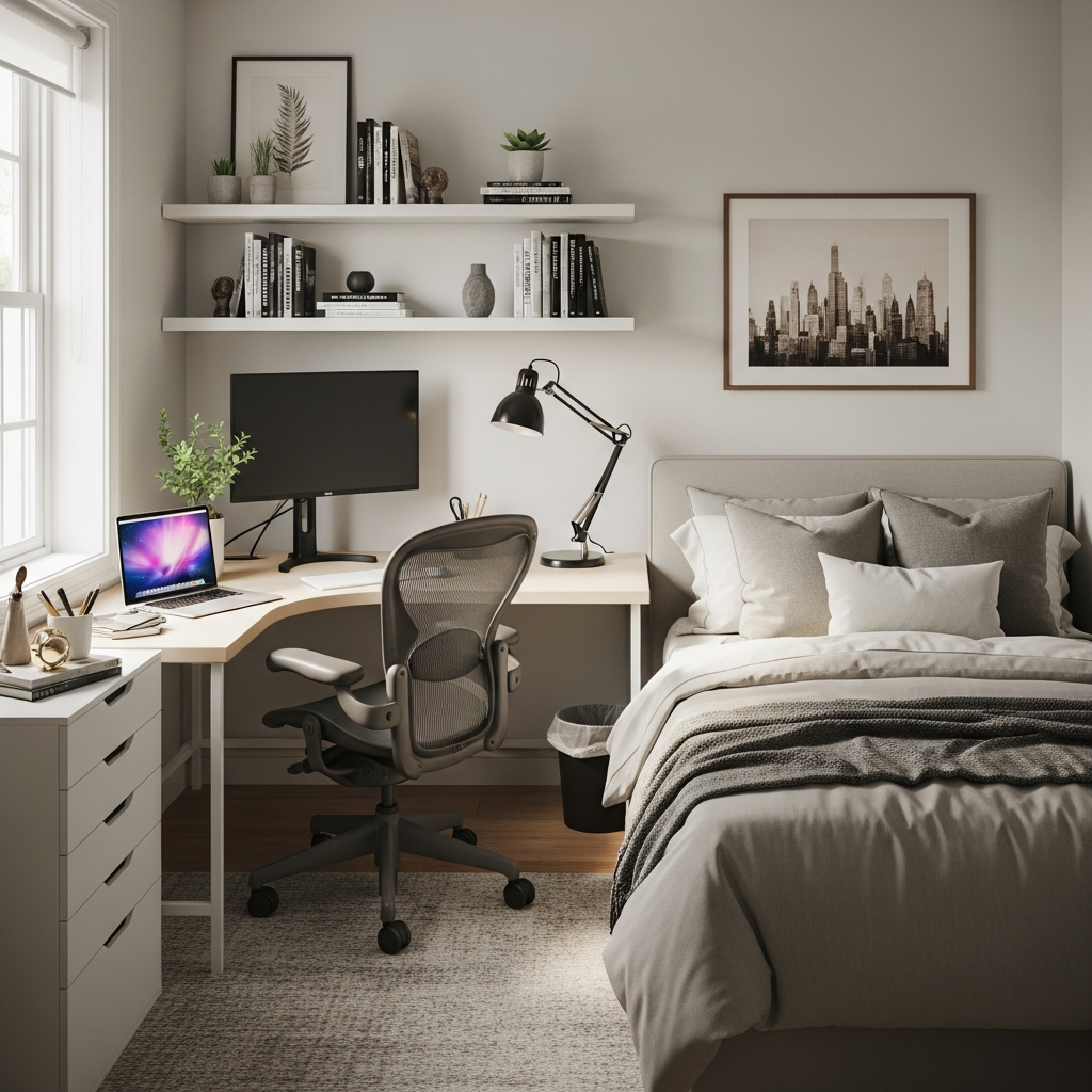 Creating a successful bedroom office in a small room is all about smart planning and choosing pieces that serve dual purposes or have a minimal footprint. The goal is to achieve harmony, ensuring your workspace enhances rather than detracts from your bedroom’s primary role as a place of rest and relaxation. Think about lighting, storage, and how colors and textures can define zones without needing physical barriers.