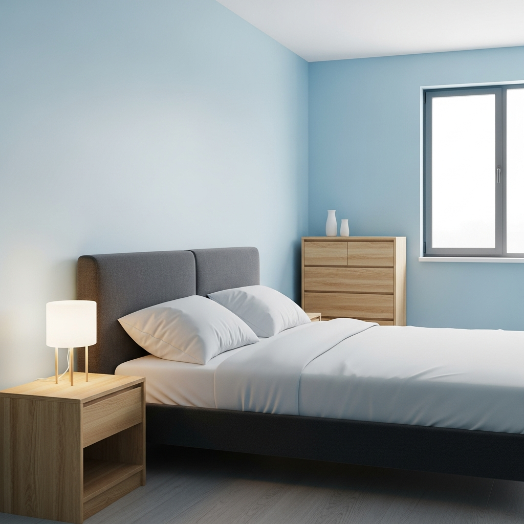 For a softer take on modern, use powder blue walls or bedding. Introduce black through a streamlined, contemporary bed frame and minimalist accessories. This combination feels gentle and inviting, with the black adding just enough contrast to keep the look crisp and distinctly modern, not overly sweet.