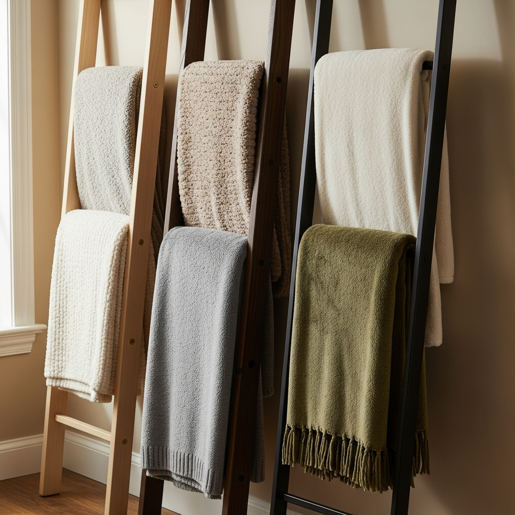 A blanket ladder is a fantastic way to display your most beautiful throws while keeping them organized and easily accessible. Choose one crafted from rich, dark wood for a traditional or rustic feel, or opt for a sleek metal ladder in matte black or polished brass for a contemporary edge. These ladders lean gracefully against a wall, adding vertical interest to a space.