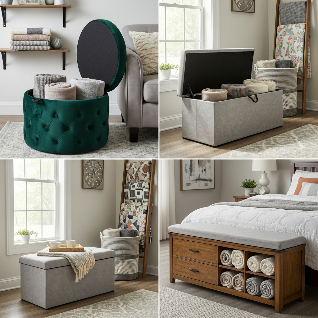 These dual-purpose pieces are fantastic for small spaces, as they provide extra seating or a convenient footrest while neatly stashing away your throws. Look for designs with elegant tufting, sleek metal legs, or a sophisticated silhouette to ensure they contribute positively to your room’s overall aesthetic.