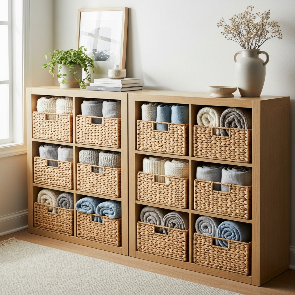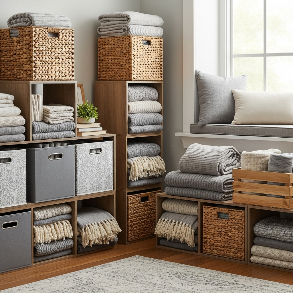 Modular storage cubes are incredibly versatile and can be highly stylish. Choose cubes made from high-quality materials like solid wood, lacquered MDF, or even metal-framed fabric cubes. Stack them, arrange them side-by-side, or use them individually to create a tailored storage system for your blankets.