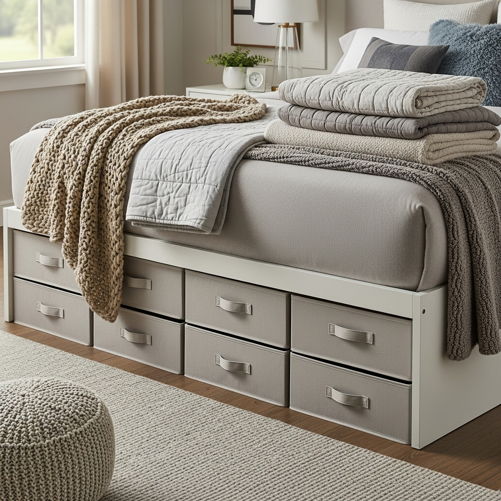 While often purely functional, under-bed storage can also be stylish if done correctly. Look for bed frames that come with integrated drawers, or invest in high-quality, fabric-covered drawers with elegant handles. These solutions keep blankets completely out of sight but easily accessible.