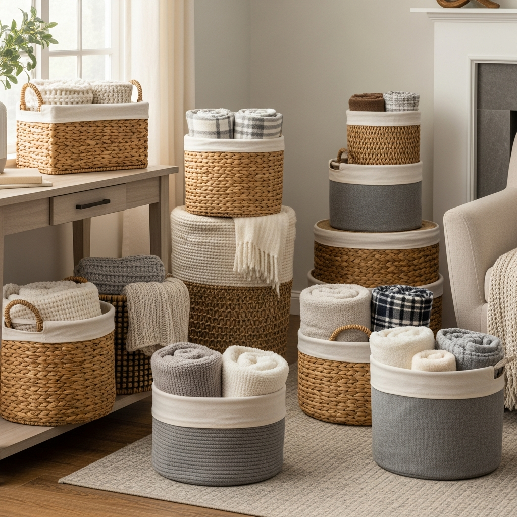 Move beyond the laundry room and consider a beautifully designed hamper-style basket for your blankets. Look for options made from fine woven materials, sleek metal mesh, or even supple leather. These usually come with lids, offering a neat and contained storage solution.