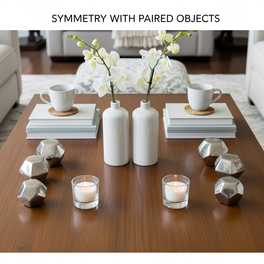 For a sense of order and balance, employ symmetry. Place two identical vases on either side of a central focal point, or two matching decorative bowls. This works especially well on larger, rectangular coffee tables. Symmetry offers a classic, timeless elegance that always feels polished.