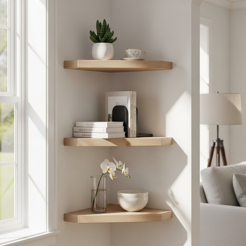 3. Floating Corner Shelves for Minimalist Display