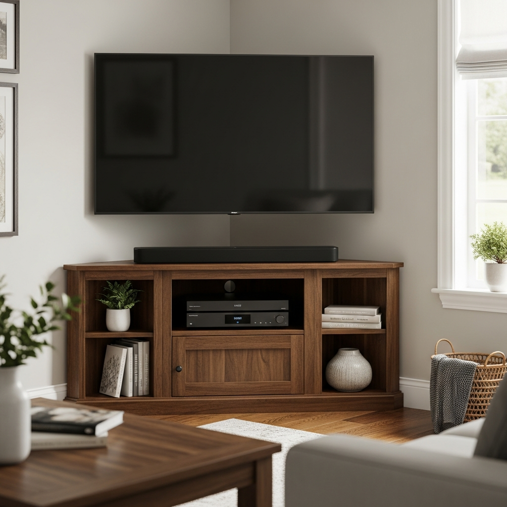 Instead of letting your television dominate a wall, tuck it neatly into a corner with a specially designed media console. This frees up wall space and creates a more balanced room layout. These consoles often include shelving and hidden compartments for electronics.