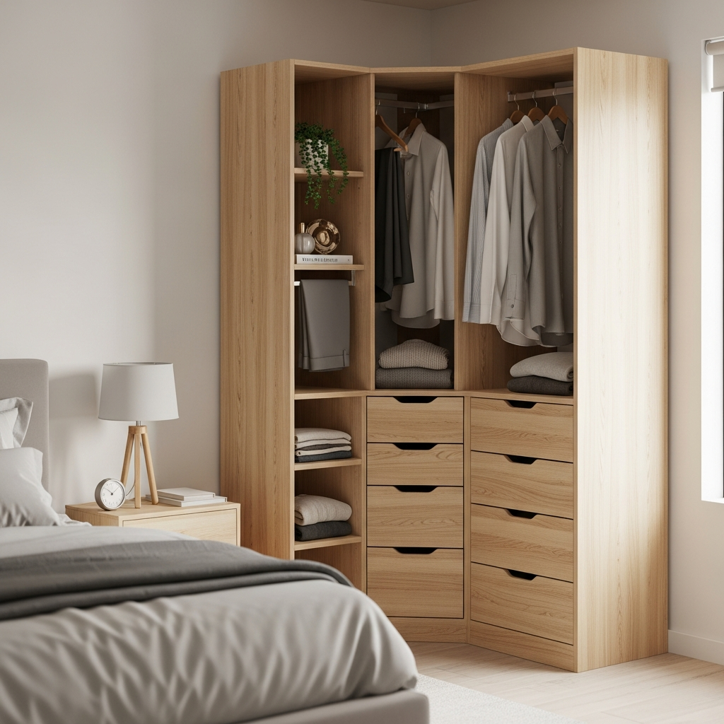 For bedrooms lacking ample closet space, a corner wardrobe can be a lifesaver. These units are designed to fit snugly into a corner, often providing surprisingly generous hanging space, shelves, and drawers for clothing and accessories.