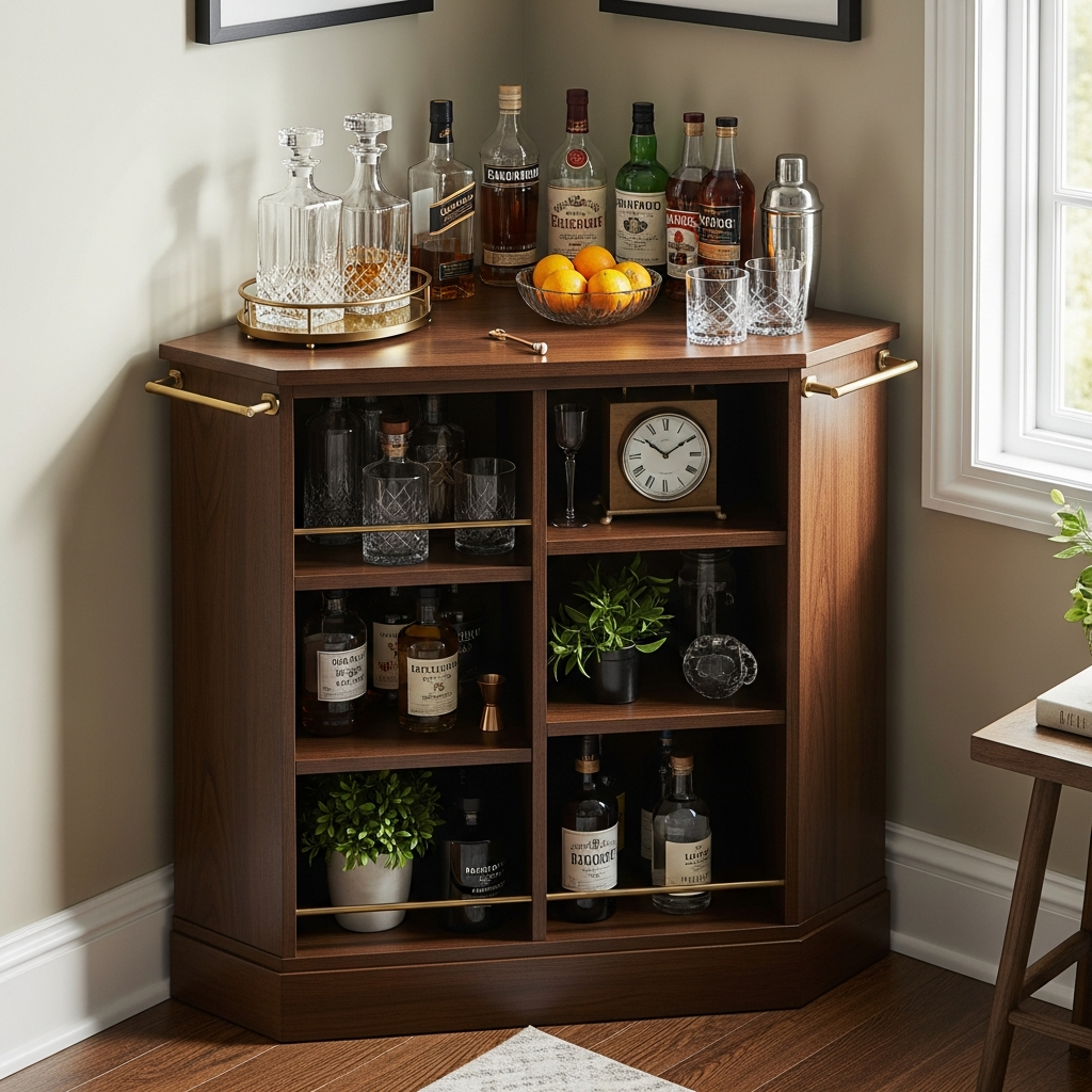 Add a touch of vintage glamour and practical entertaining space with a corner cabinet designed to function as a bar. This piece can hold bottles, glassware, and mixing tools, making it easy to host without needing a full bar setup.