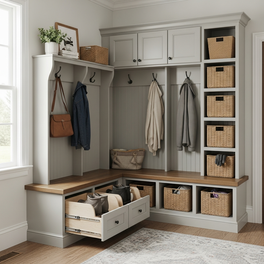 10. Mudroom Corner Bench with Storage