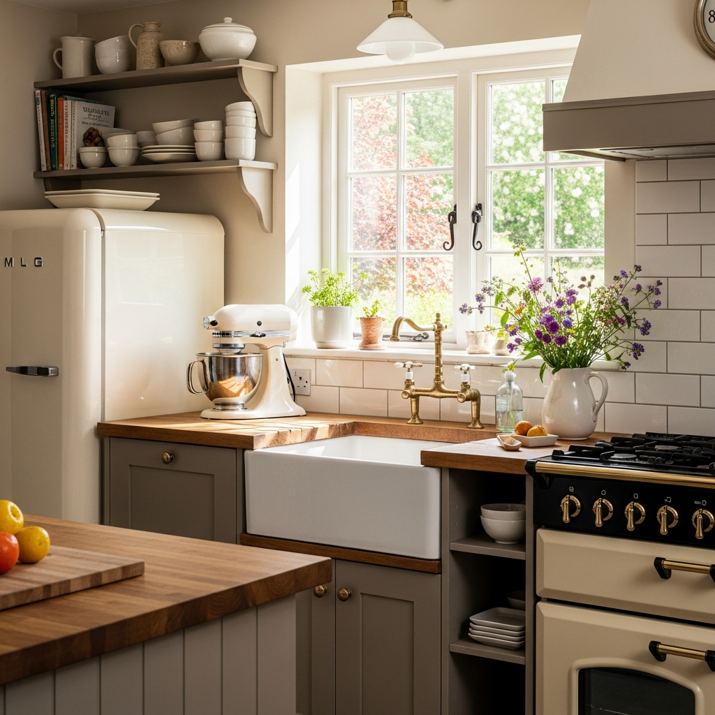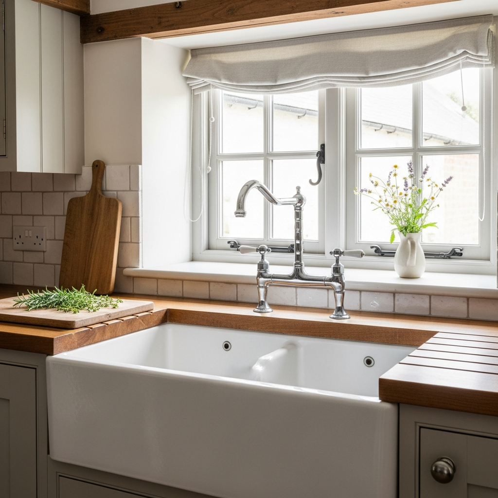 Nothing says cottage kitchen quite like a grand farmhouse sink. Its deep basin and exposed front create a focal point that is both functional and aesthetically pleasing. Opt for a white ceramic or fireclay version for that authentic, sturdy feel, perfect for washing fresh produce or soaking vintage serving dishes.