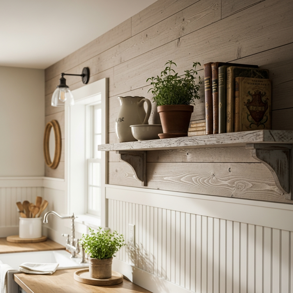 Beadboard or shiplap paneling instantly elevates a kitchen’s cottage credentials. These classic wall treatments add texture and architectural interest, whether used on a backsplash, an island, or across an entire wall. Painted in a soft white or a delicate pastel, they create a light, airy, and distinctly cozy backdrop.