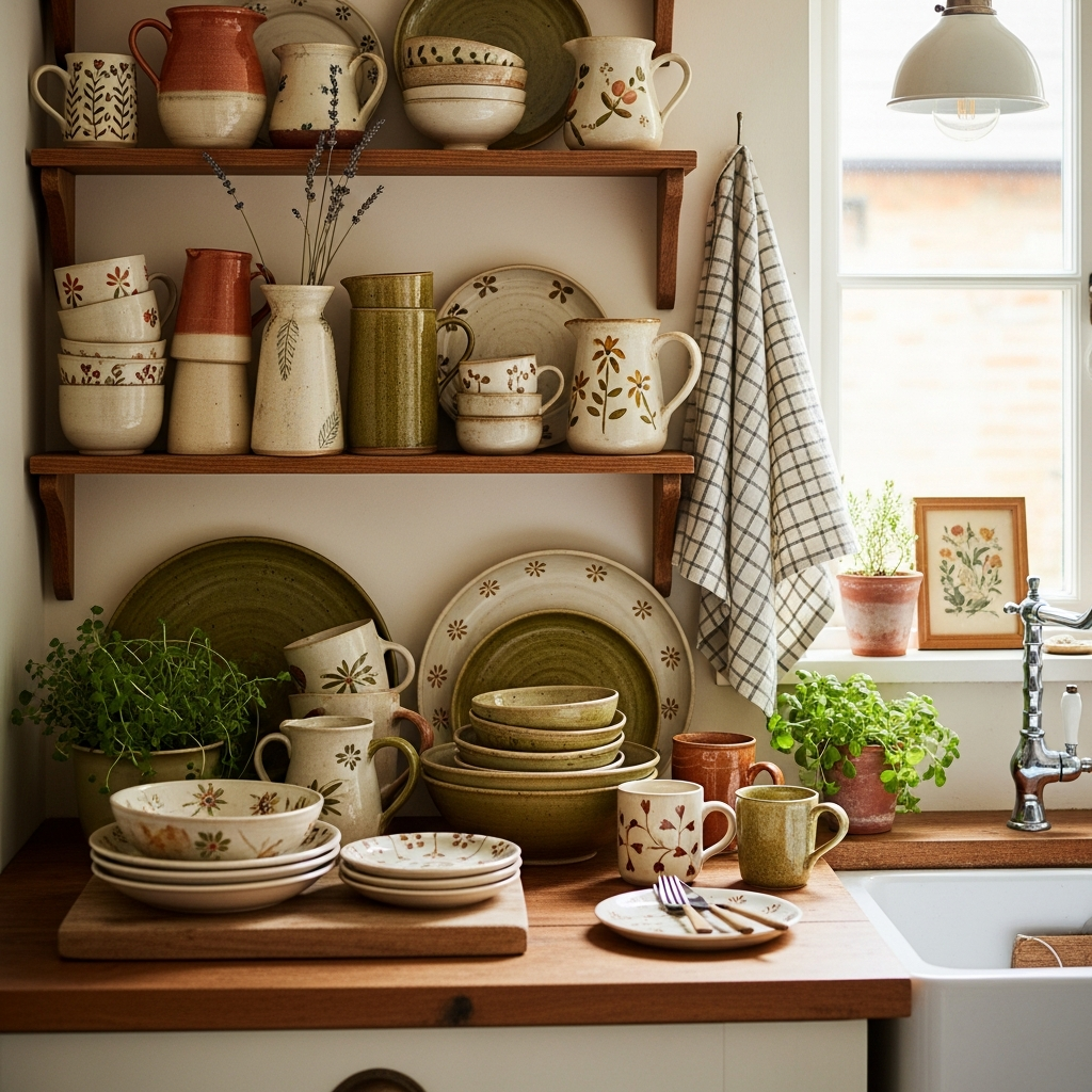 Displaying collections of handmade pottery, ceramic dishes, or unique antique crocks adds a personal and artistic touch. These items tell a story and bring warmth through their varied textures and earthy tones. Group them on open shelves, inside a glass-front cabinet, or on a charming hutch.