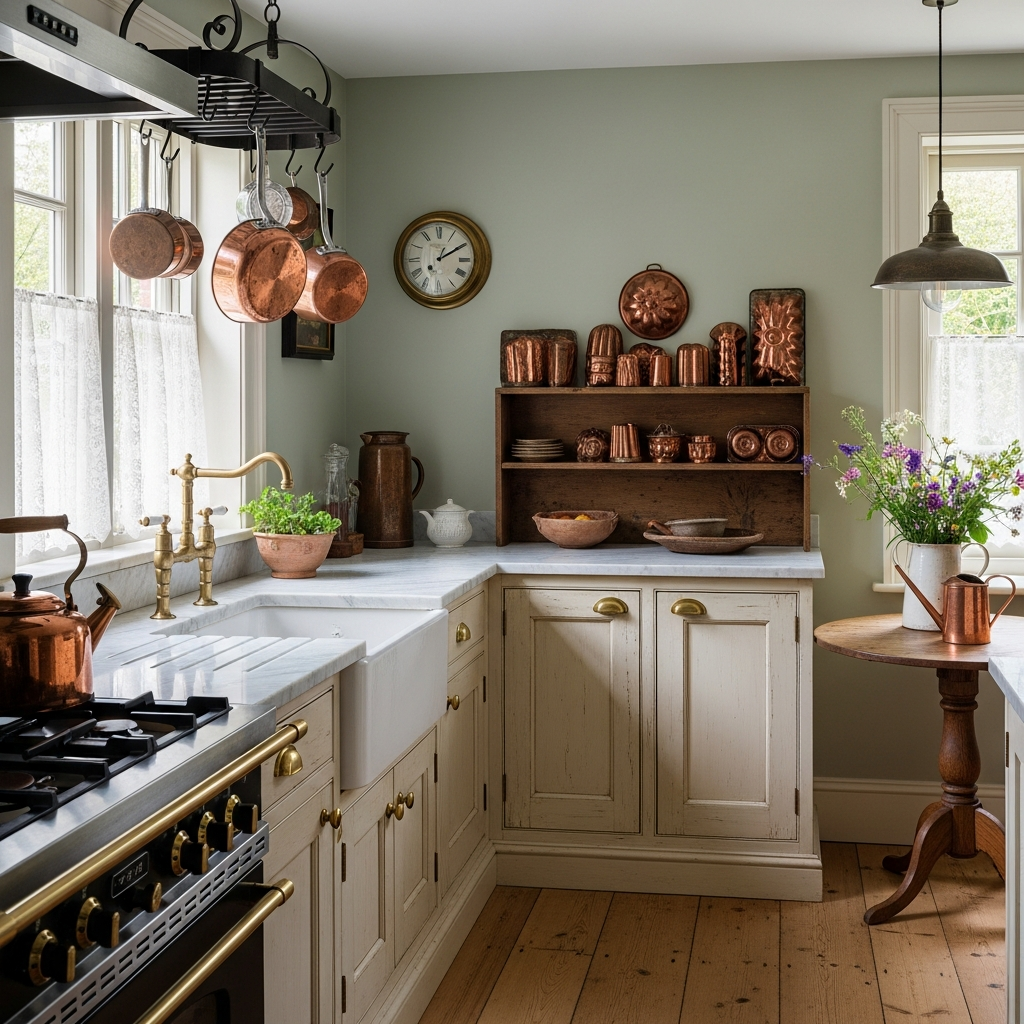 The subtle gleam of aged brass or copper hardware, light fixtures, or even a collection of cookware can add a sophisticated touch to your cottage kitchen. These metals develop a beautiful patina over time, providing a touch of warmth and vintage elegance that complements natural wood and soft colors.