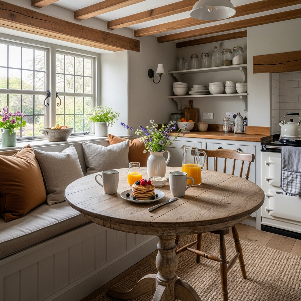 A dedicated breakfast nook, perhaps with a built-in banquette and a round wooden table, is the epitome of cottage coziness. Add plump cushions and throw pillows in cheerful fabrics. This inviting corner encourages lingering over morning coffee or intimate family meals, fostering connection and comfort.