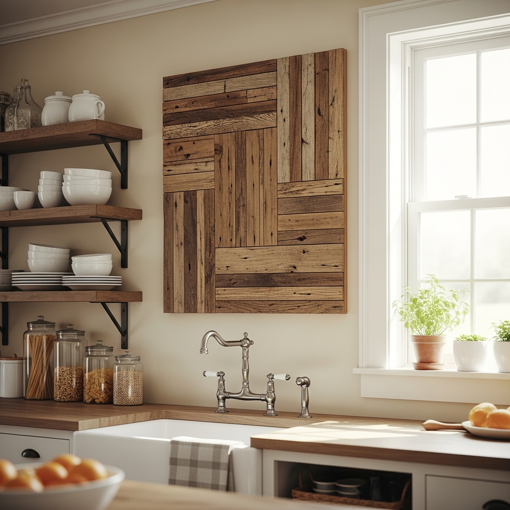 Introduce the warmth and character of wood with decorative wooden wall art. This could be a large carved panel, a collection of smaller wooden blocks with interesting grains, or even a piece of reclaimed barn wood serving as a backdrop. It adds organic texture and a cozy, natural feel, perfect for farmhouse or Scandinavian styles.