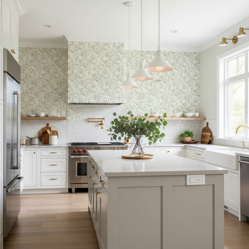 Infuse immediate character with an accent wall adorned in stylish wallpaper. Choose a bold geometric pattern for a modern touch, a delicate floral print for a cottage feel, or a textured grasscloth for understated elegance. Wallpaper adds depth, color, and a sophisticated finish, instantly transforming a plain kitchen wall into a design statement.