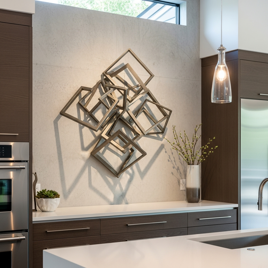 For those who love bold statements, a modern abstract wall sculpture can add a sophisticated artistic flair. Choose a piece with interesting shapes, textures, or metallic finishes that complement your kitchen’s existing palette. This unconventional decor choice instantly elevates the space into a gallery-like environment.