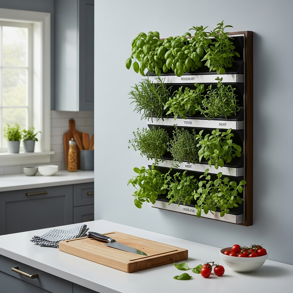 Bring nature indoors and add fresh flavor to your cooking with a vertical herb garden. Wall-mounted planters or a tiered shelving unit can hold an array of herbs like basil, mint, and rosemary. This green wall decor is not only beautiful and aromatic but also a wonderfully functional addition, infusing freshness and vitality into your kitchen.