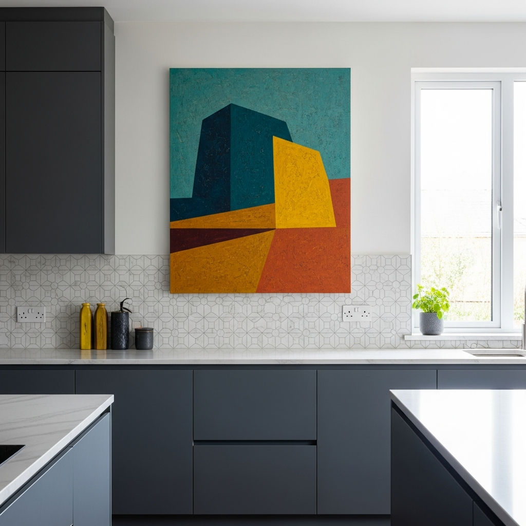 A single, large piece of art can make a powerful impact and become the focal point of your kitchen. Choose a vibrant abstract painting to inject a burst of color or a serene landscape print to evoke a sense of calm. The art piece should resonate with your personal style and complement the existing color palette, instantly elevating the room’s sophistication.
