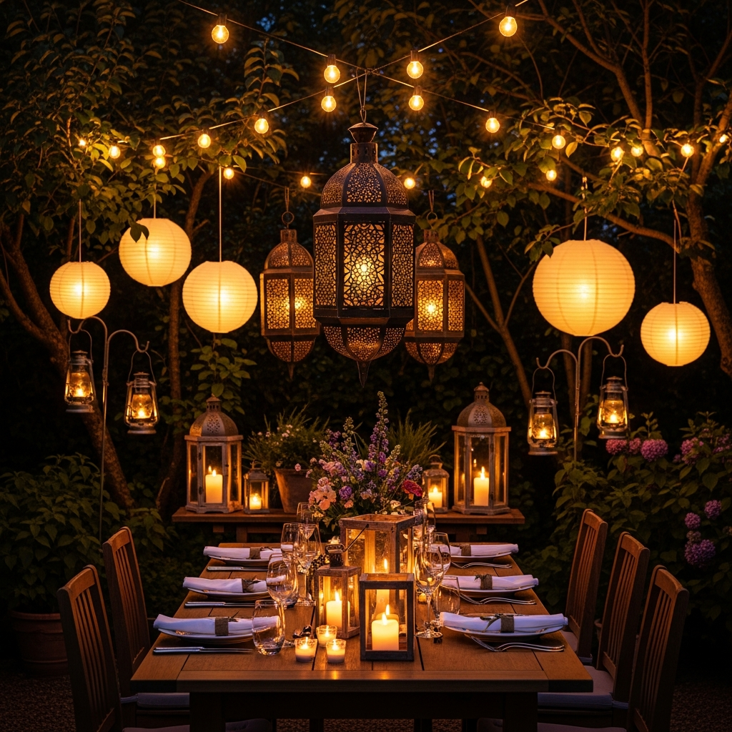 Weather-resistant lanterns made from galvanized steel, teak wood, or durable plastic are ideal here. Use them alongside string lights and potted herbs for a truly magical outdoor dining experience. The soft, ambient light transforms your patio into an enchanting retreat, perfect for lingering conversations under the stars.