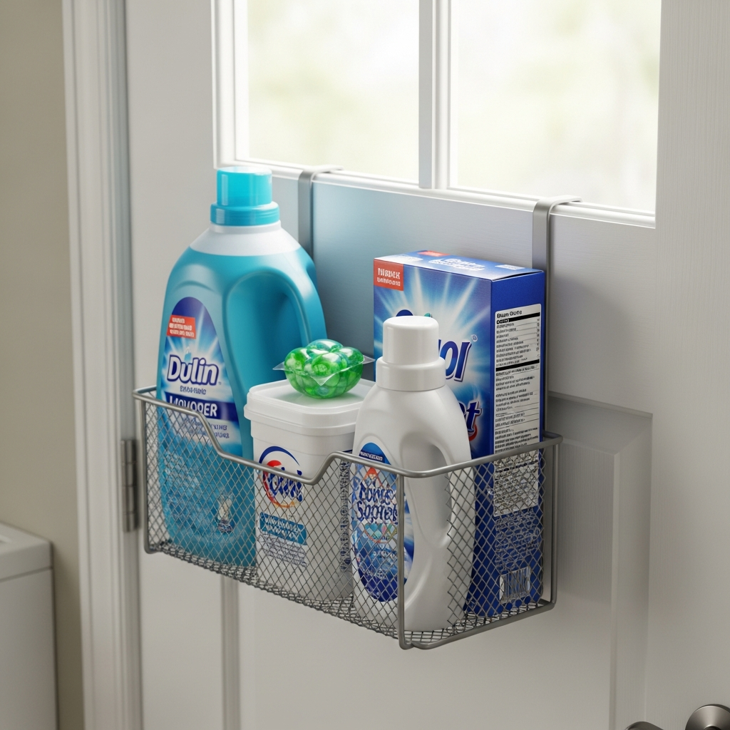 Don’t overlook the back of a door! An over-the-door caddy provides instant, out-of-the-way storage for smaller items, including various detergent accessories or smaller bottles.