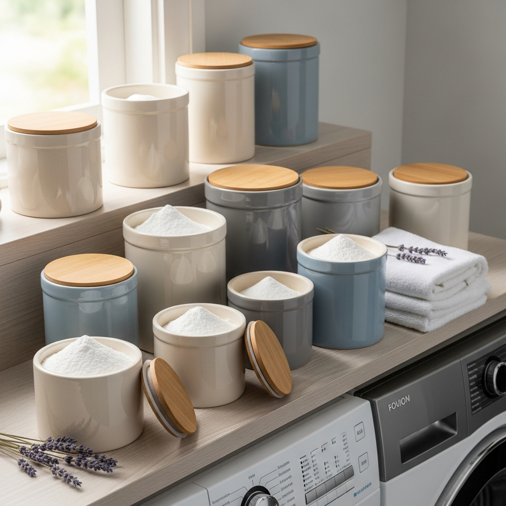 For a touch of artisanal sophistication, ceramic crocks are a beautiful way to store detergent pods or powder. Their solid, weighty presence feels luxurious.