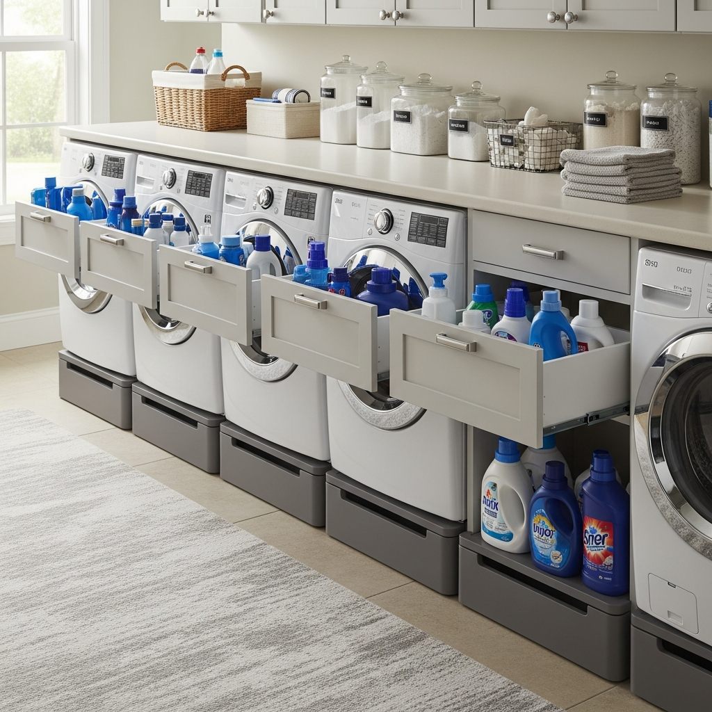 If your washer and dryer are front-loading, pedestals are a game-changer. They elevate your appliances to a more comfortable height and often include spacious storage drawers beneath.