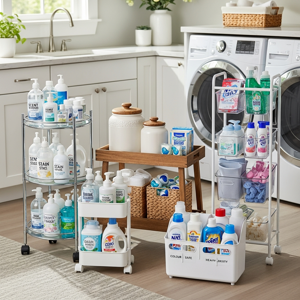 When space is at a premium or you need flexibility, a tiered rolling cart is a versatile solution. It can be tucked away when not in use and rolled out during laundry day.