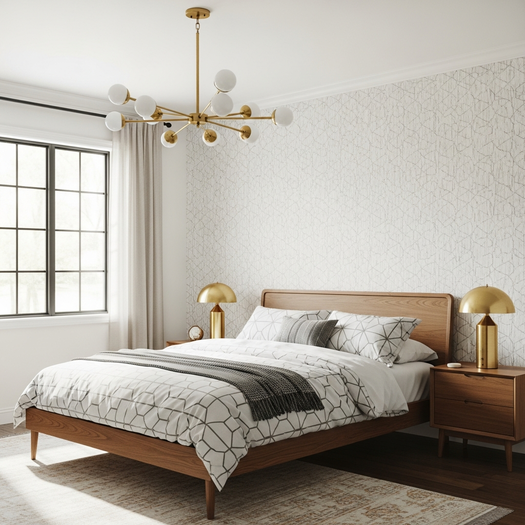 Elevate your space with the timeless gleam of brass. Think brass pendant lights, sleek table lamps, and picture frames. Introduce geometric patterns through a throw pillow, a piece of abstract art, or even a subtle wallpaper accent. The combination feels both crisp and luxurious.