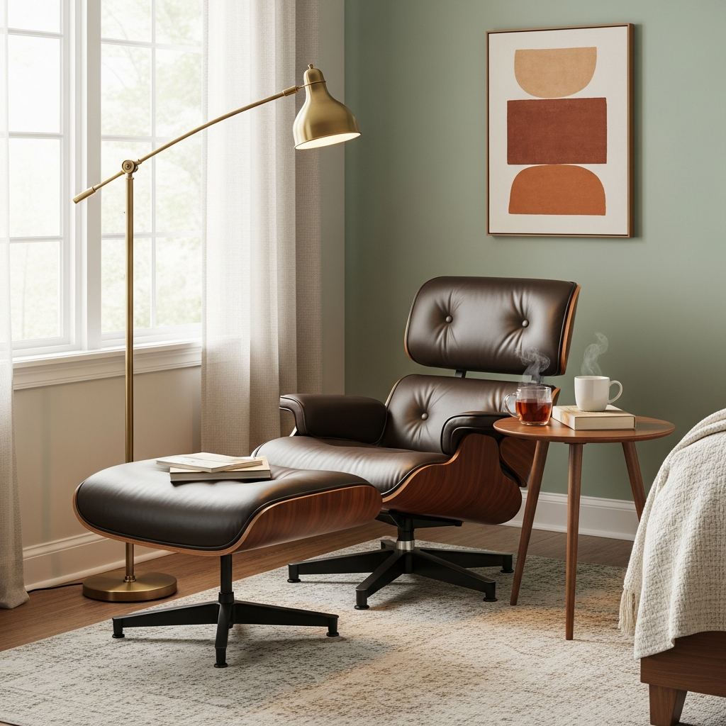 Carve out a dedicated reading nook with a classic midcentury lounge chair, perhaps in leather or a textured fabric. Add a sculptural floor lamp and a small, round side table for your book and a cup of tea. It’s a perfect blend of comfort and style.