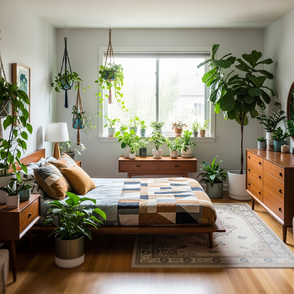 Bring the outdoors in with a collection of houseplants. Midcentury design embraced nature, and indoor plants in stylish ceramic or woven planters enhance the organic feel. Consider a tall Fiddle Leaf Fig, a Snake Plant, or a trailing Pothos for a fresh, lively touch.