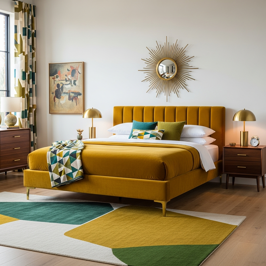 For a touch of retro glamour, select a bed with a bold velvet upholstery in colors like mustard yellow, emerald green, or deep ruby. Pair it with polished brass light fixtures and perhaps a starburst mirror above the headboard. Keep other elements simple to let the textures and colors shine.