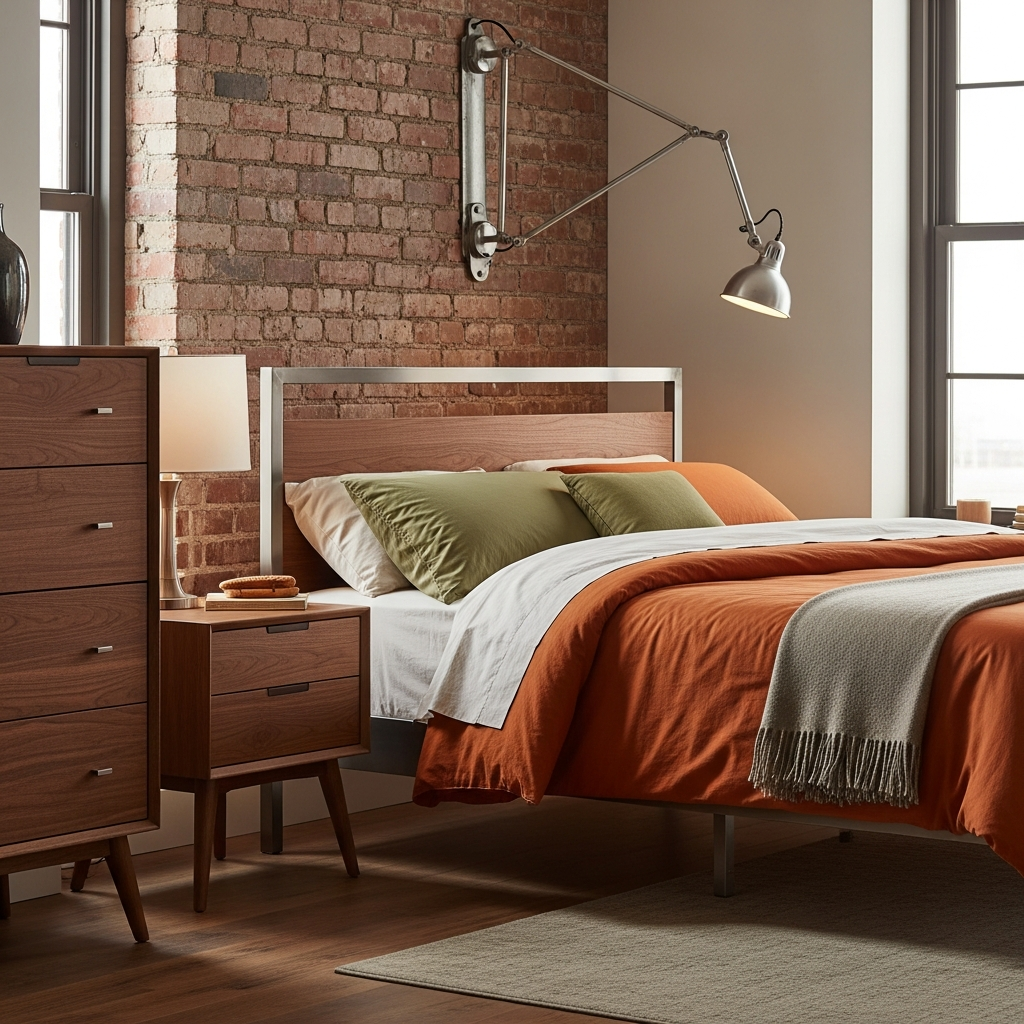 Integrate subtle industrial elements for an edgy twist. A black metal bed frame, a concrete planter, or exposed brick can provide an interesting contrast. Balance these with warm wood tones and soft textiles to maintain a cozy and inviting atmosphere.