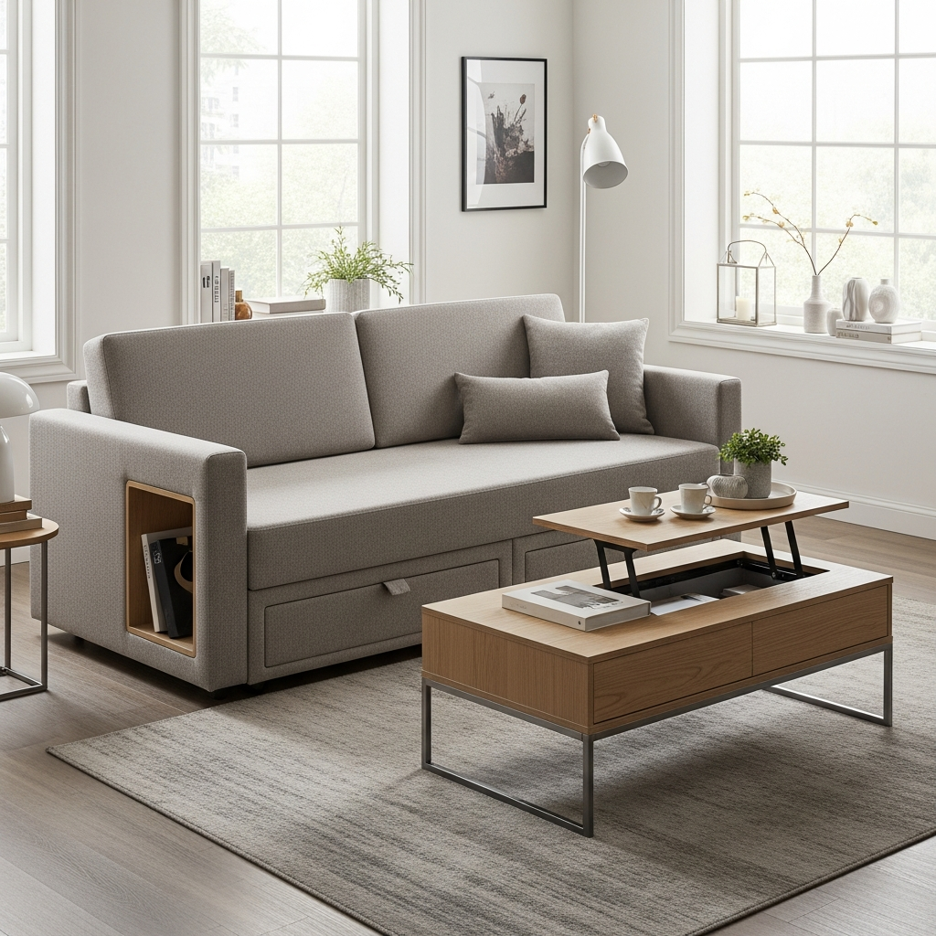 The cornerstone of small-space living, multi-functional pieces are essential. Think sofa beds, ottomans with hidden storage, or coffee tables that expand for dining. These smart choices serve multiple purposes, reducing the need for extra items and keeping your floor plan fluid and adaptable. Look for clean lines and simple silhouettes in light wood or metal finishes.